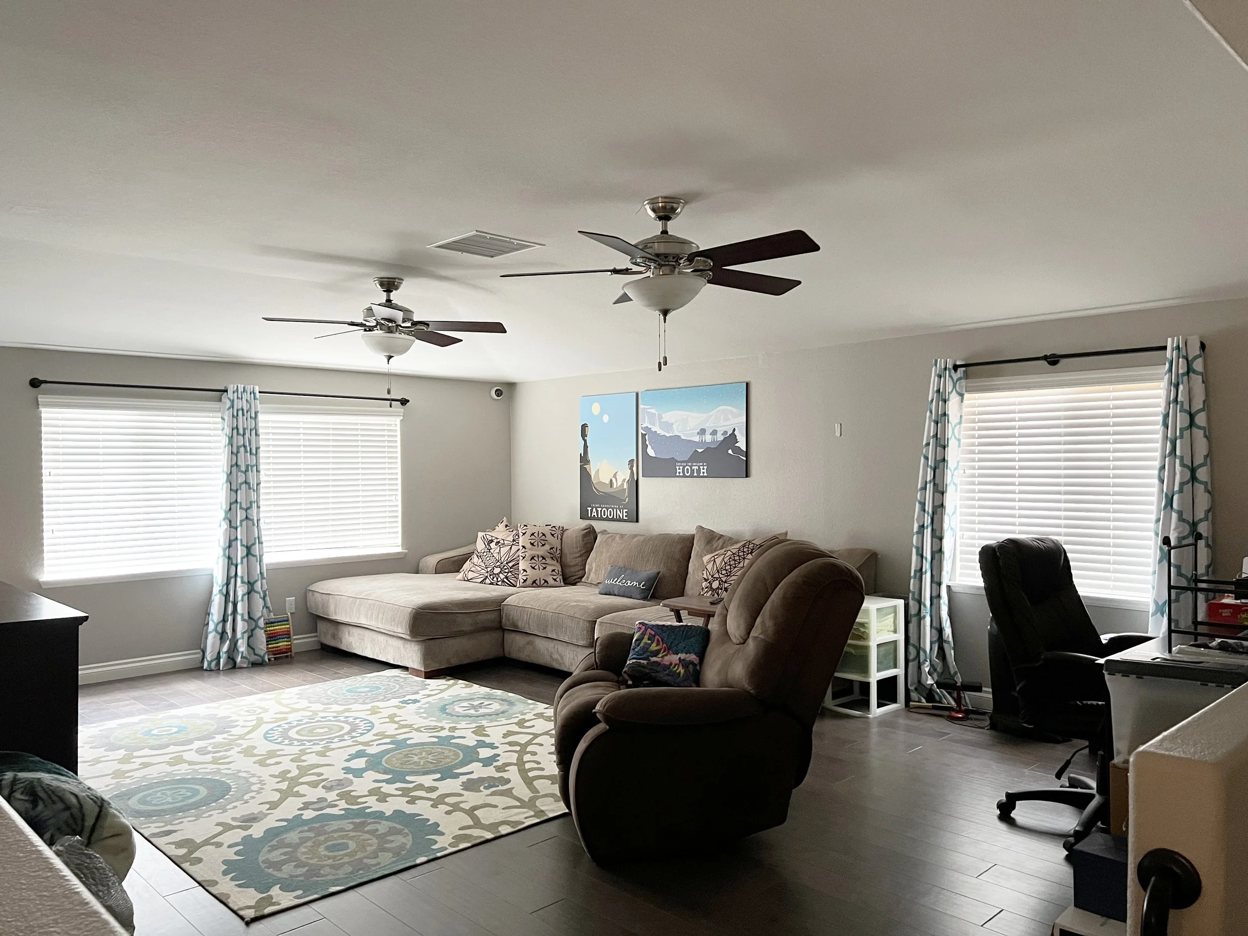 This home features 4 bedrooms and 2.5 bathrooms, including a second floor master suite that offers a double door entry, a private shower, a large soaking tub, and a large walk-in closet. The second floor also includes a large loft area that is used as a large family room. This area allows for an abundance of natural light and is equipped with dual ceiling fans, electrical wiring for a wall mounted television, and sufficient space for a large sectional sofa and accent furniture. The loft area is surrounded by three additional bedrooms, one additional full bathroom, and an open workspace that may be used as a home office. At the ground level, this home offers an updated kitchen with stainless steel appliances, a walk-in pantry, and a large extended center island that includes a sitting area. The first floor also includes a formal dining room, an additional half bathroom, an indoor laundry area, and direct access to a large two car garage. This home also offers central heating and air conditioning, with separate climate zones and separate control panels both upstairs and downstairs, a cozy fireplace in the living room, built-in custom shelving and bookcases, and ample storage throughout. Outside, the backyard offers a fenced-in sparkling swimming pool and spa, a covered patio area, and new vinyl fencing for privacy. Lastly, this home is equipped with a 12kW solar system that generates over 10,000 kW hours per year to keep energy costs low. The system also includes a 10kW backup battery to store excess electricity. This home's entire solar system is fully owned, has already been paid for, and is under full warranty. Full ownership of the system will transfer to new owner, including all warranties. All of this home’s amenities are safeguarded by a state of the art security and surveillance system. This gorgeous home and its abundance of amenities is sure to please. Schedule an appointment to see it at your earliest convenience. You will not be disappointed!
